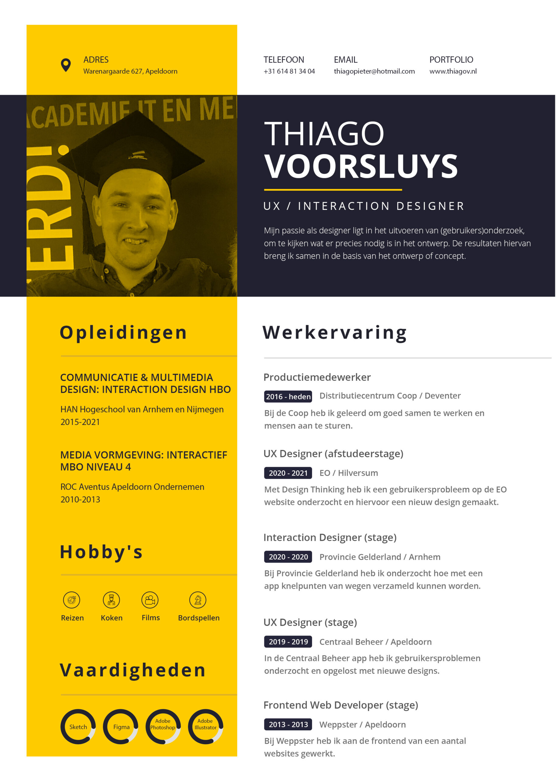 Als UX Designer ben ik gepassioneerd in het creëren van de juiste gebruikerservaring in een app of website. Ik vind het belangrijk om de doelgroep echt centraal te zetten tijdens een ontwerpproces. Dit geeft mij meer houvast tijdens het ontwerpen en de doelgroep meer reden om het digitale product te gebruiken.