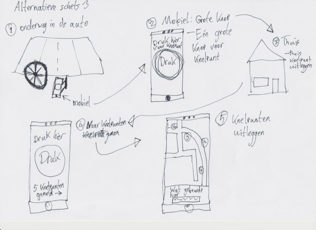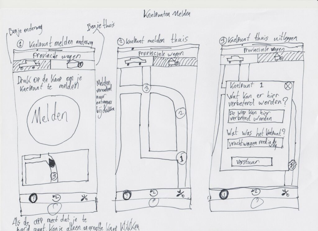 In het uiteindelijke concept melden gebruikers knelpunten terwijl ze de desbetreffende weg gebruiken. De app kan hierbij aan gelaten worden terwijl de mobiel in een mobiele houder zit. Om te voorkomen dat gebruikers afgeleid worden tijdens het rijden maakt de app gebruik van één grote knop. Met deze knop slaan ze een locatie op en die locatie kunnen ze thuis uitleggen en versturen naar de gemeente.